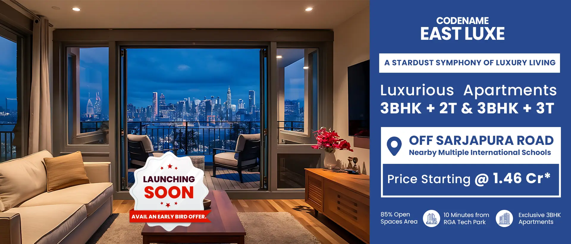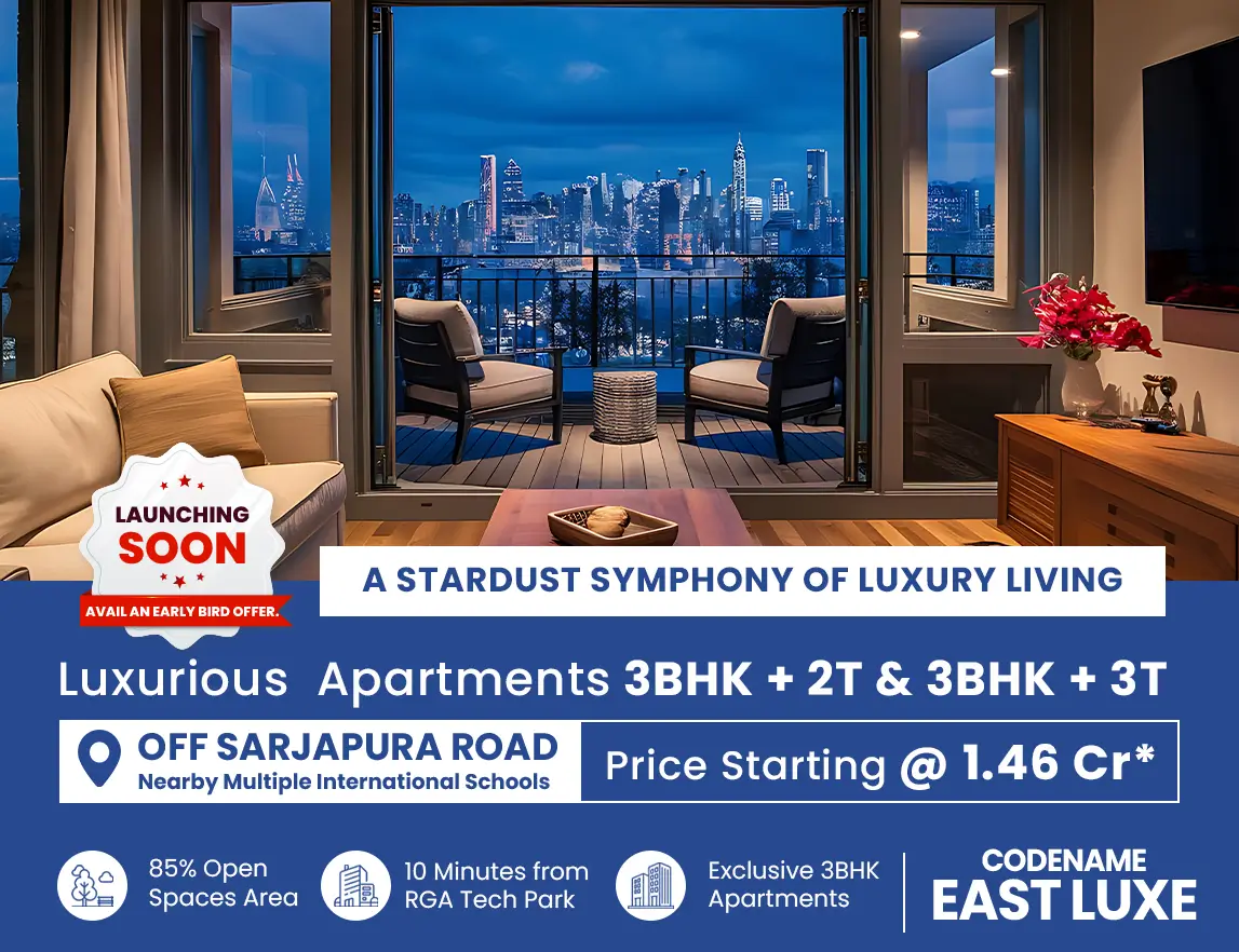 Located off Sarjapur Road in Codename EAST LUXE offers an exquisite blend of comfort, elegance, and modern living. Built by the trusted NBR Group, Bangalore's leading name in real estate, these 3 BHK residential apartments are designed to elevate your lifestyle.