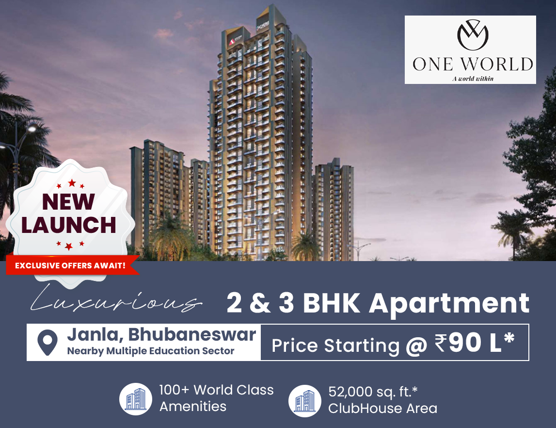 Codename Mesmerise now officially named One World is a premium residential development in South Bhubaneswar, located just off NH16, near CV Raman College, and 5 minutes from India’s largest IT hub, Info Valley. Spread across 6.5 acres, this project features 1008 spacious apartments in 2, 3, and 4 BHK configurations, across three modern towers.
